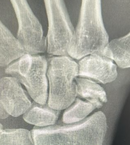 Figura: Raio X com pseudoartrose do pólo proximal do escafóide. Fonte: “Acervo pessoal”.