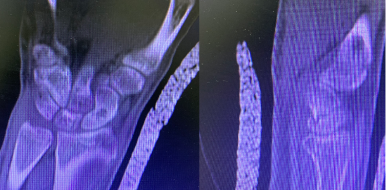 Figura: Tomografia computadorizada com pseudoartrose de escafóide. Fonte: “Acervo pessoal”.
