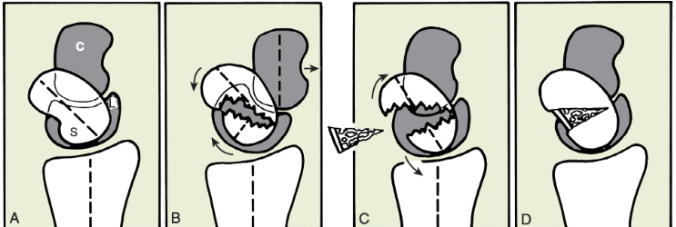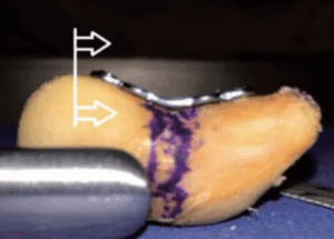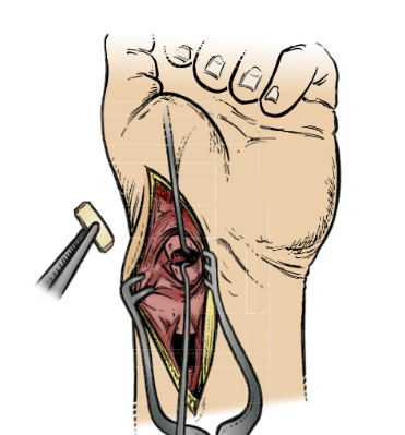 Figura: Técnica de correção de deformidade com uso de enxerto avascular. Fonte “Greens Operative Hand Surgery 8th edition”.
