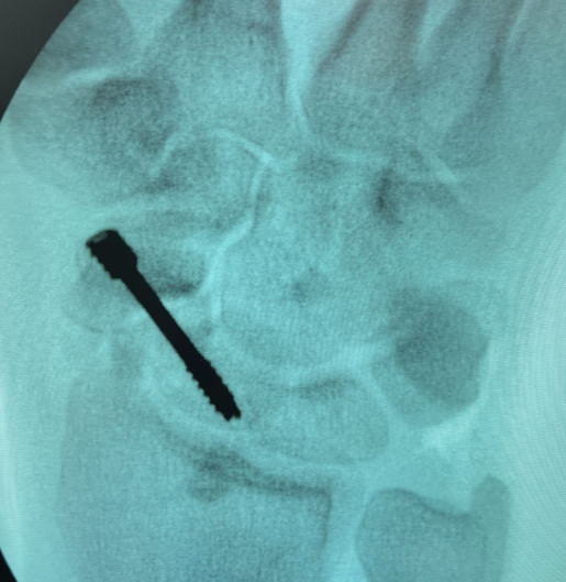 Figura: Fixação de pseudoartrose de escafóide com parafuso. Fonte: “Acervo pessoal”.